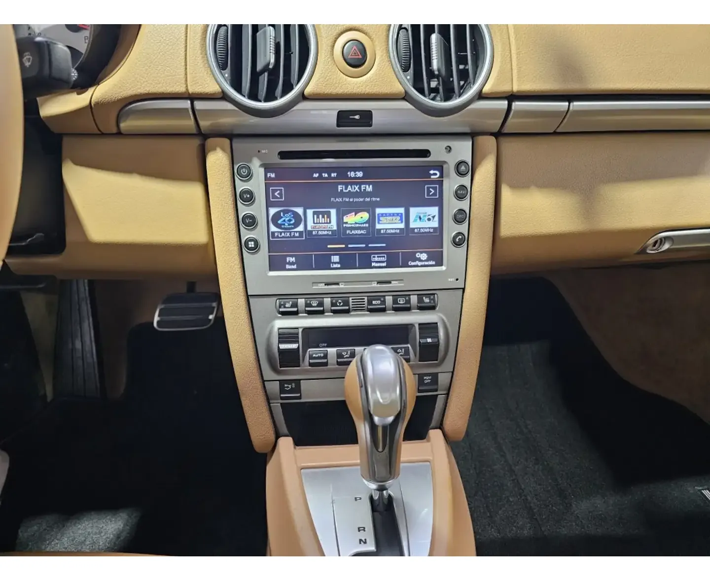Este Porsche Cayman S 3.4 de 2006 se ofrece por LB2motor en Terrassa con 162.000 km y cambio automático Tiptronic S de 5 velocidades. Terminado en negro sobre cuero Camel, el coche cuenta con asientos calefactables, llantas de 19”, y mejoras modernas como pantalla con CarPlay. La venta incluye dos llaves, historial de mantenimiento, cambio de nombre y una garantía de 12 meses.